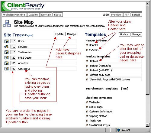 ... or click the MANAGE button next to the Update button to create some new pages/categories.